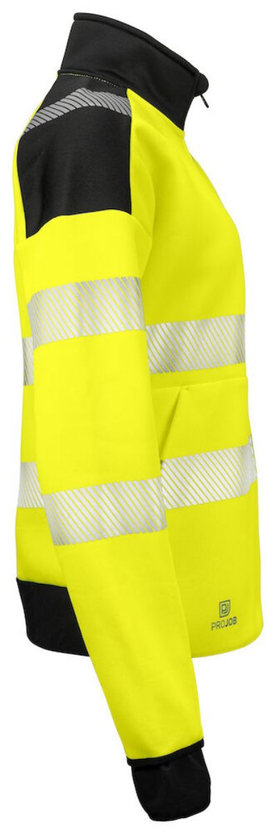 Denna dam-sweatshirt är utformad med en hel, grovtandad dragkedja framtill och har kontrastfärgade inslag över axlar, krage, ärmar och ryggslut för en distinkt och stilfull design. Den tighta passformen kombinerad med softshellstretch i ryggslutet ger maximal rörelsefrihet och komfort. Sidfickor med dragkedja och rymliga innerfickor i mesh tillhandahåller praktiska förvaringsmöjligheter. Mudden i softshellmaterial vid ärmsluten har även tumgrepp för extra komfort och passform. Dessutom är sweatshirten utrustad med segmenterade reflexdetaljer från 3M, inklusive över axlarna, vilket ger ökad synlighet och säkerhet i arbetsmiljöer med krav på hög synlighet enligt EN ISO 20471 klass 3/2-standard.