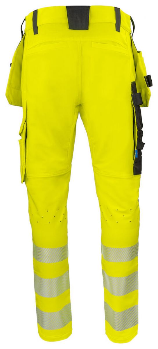 För extra stadga har byxan en modern passform med icke-stretchiga sidor upptill. Dessutom är den utrustad med en rad praktiska fickor för att underlätta arbetsdagen. På vänster sida finns benfickor med gott om plats för verktyg och pennor, samt en mobilficka med magnetlås och fäste för ID-kortshållare. På höger sida finns smidiga fickor för tumstock och verktyg, inklusive en knivknapp för extra säkerhet. Sidfickorna har praktiska dragkedjor för att säkert förvara små tillbehör.
