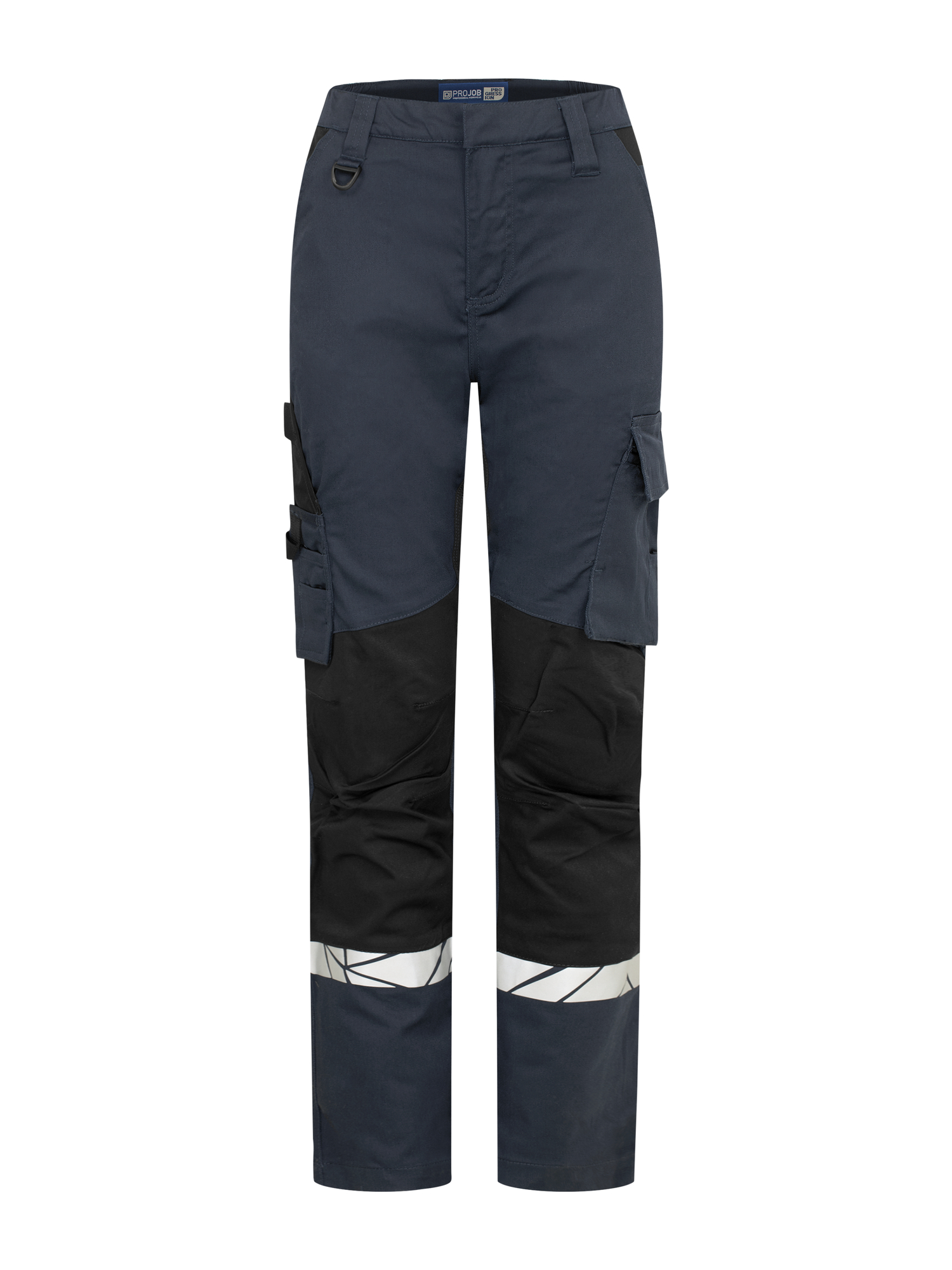 Servicebyxa med öppna sid- och bakfickor. Benfickor, på vänster sida en rymlig ficka med lock och magnetstängning, en invändig mobilficka och ett fäste för ID-kort. På höger sida ficka för tumstock och ficka för verktyg med knivfäste. Förböjda knän, stretchtyg i grenen och insydd stretchpanel i midjan för ökad komfort. Bredare bälteshälla baktill för att förhindra tryck från bälte. Dold midjeknapp. I den inre vänstra sidosömmen finns en tvättchippsficka.