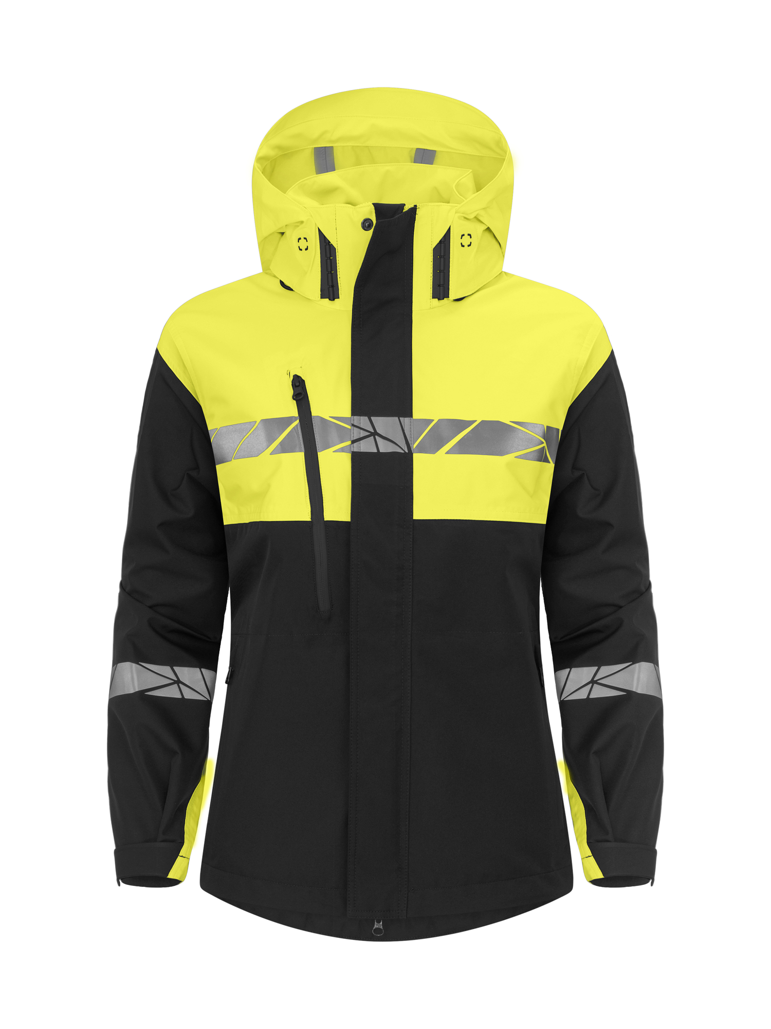 Skaljacka som är helt vind- och vattentät med god andningsförmåga, tejpade sömmar. Dragkedjan framtill har en utvändig vindslå för att förhindra vinddrag samt att väta tränger in, försluts med tryckknappar. Hög krage framtill. Avtagbar huva, justerbar på två sätt med dragsko framtill och wiresystem baktill. Sidfickor på båda sidor, rymlig bröstficka på höger sida och en innerficka på vänster sida, samtliga fickor försluts med dragkedja. Reglerbar midja med snodd, reglerbara ärmslut med kardborre. I den inre vänstra sidosömmen finns en tvättchipficka.