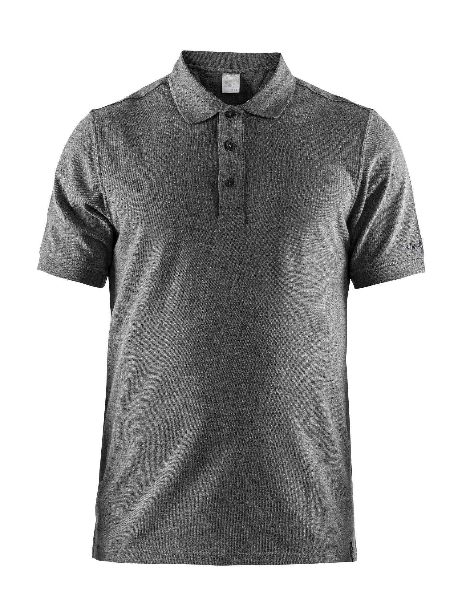 Modern pikétröja med treknapps knäppning och kontrasterande detalj på kragen.